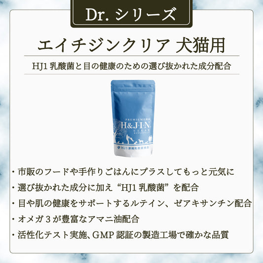 Premium 乳酸菌 エイチジンクリア 犬猫用 27.9g(90粒) エイチアンドジン JIN H&J 犬 猫 ペット 動物 死菌 HJ1 乳酸菌 眼 視野 サプリメント