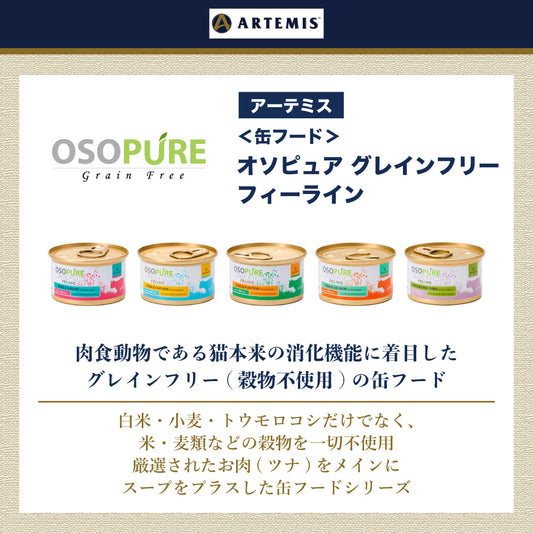 アーテミス オソピュア グレインフリー ツナ缶 85g 猫 猫用フード キャットフード ウェットフード 猫缶 穀物不使用 ひよこ豆 全年齢用 OSOPURE