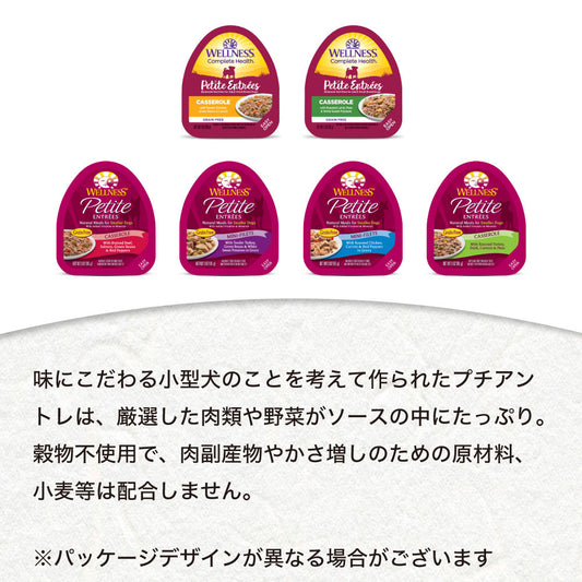 ウェルネス プチアントレ 柔らか煮込みチキン ビーフ&サーモン入り 85g 犬 ドッグフード 犬用 総合栄養食 ウェット 小型犬向き 穀物不使用 WELLNESS
