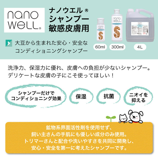 ナノウエル シャンプー 敏感皮膚用 60ml ペット 犬 猫 お手入れ シャンプー 洗浄 消臭 毛艶 皮膚 被毛 保湿 ケア 敏感肌 イヌ ネコ 日本製