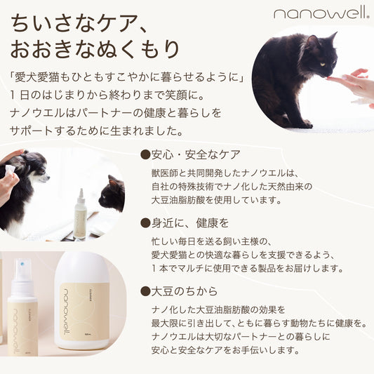 ナノウエル 清拭美容液 300ml ペット 犬 猫 お手入れ シャンプー 洗浄 消臭 毛艶 皮膚 被毛 ケア ドライシャンプー イヌ ネコ 日本製