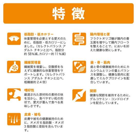 セレクトバランス スリム 成犬の体重管理用 チキン 小粒 7kg 犬 ドッグフード 犬用 フード ドライ 成犬用 ダイエット アダルト 肥満 低カロリー 低脂肪
