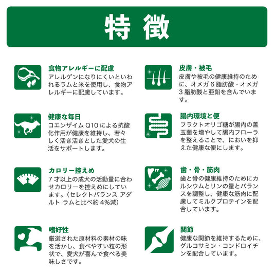セレクトバランス アダルト 1才以上の成犬用 ラム 小粒 7kg 犬 ドッグフード 犬用 フード ドライ 成犬用 アレルギー グルコサミン コンドロイチン配合