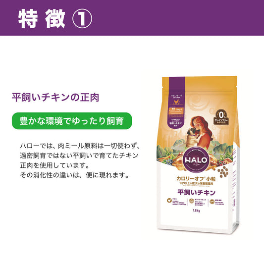ハロー カロリーオフ 小粒 1才以上の成犬の体重管理用 平飼いチキン 1.8kg 犬 ドッグフード 犬用 フード ドライ グレインフリー 小粒 アレルギー 穀物不使用