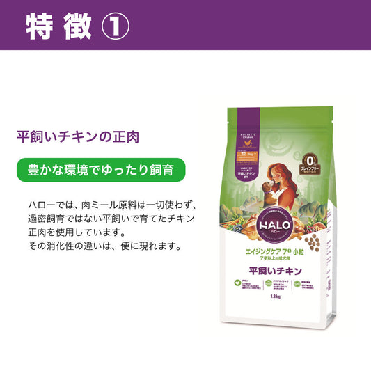 ハロー エイジングケア 7+ 小粒 7才以上の成犬の健康維持 平飼いチキン 1.8kg 犬 ドッグフード 犬用 フード ドライ グレインフリー 小粒 アレルギー 穀物不使用