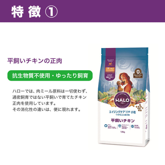 ハロー エイジングケア 11+ 小粒 11才以上の成犬の健康維持 平飼いチキン 1.8kg 犬 ドッグフード 犬用 フード ドライ グレインフリー 小粒 アレルギー