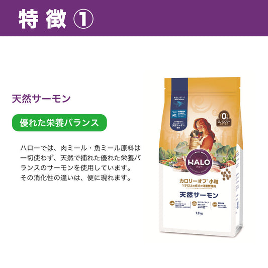 ハロー カロリーオフ 小粒 1才以上の成犬の体重管理用 天然サーモン 1.8kg 犬 ドッグフード 犬用 フード ドライ グレインフリー 小粒 アレルギー 穀物不使用