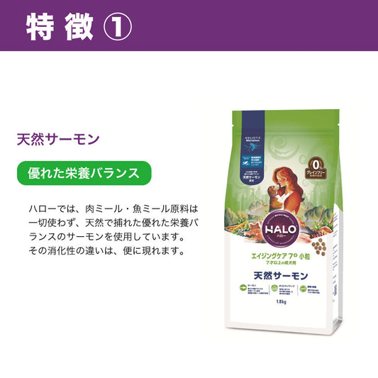ハロー エイジングケア 7+ 小粒 7才以上の成犬の健康維持 天然サーモン 1.8kg 犬 ドッグフード 犬用 フード ドライ グレインフリー 小粒 アレルギー 穀物不使用