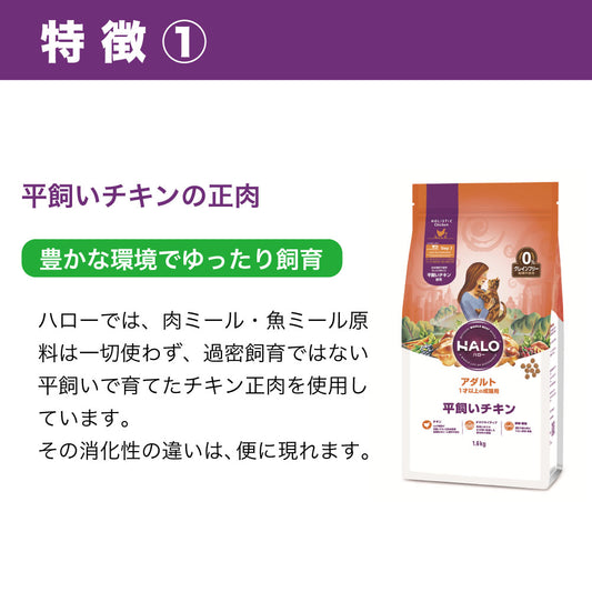 ハロー アダルト 1才以上の成猫用 平飼いチキン 1.6kg 猫 キャットフード 猫用 フード ドライ グレインフリー アレルギー 穀物不使用