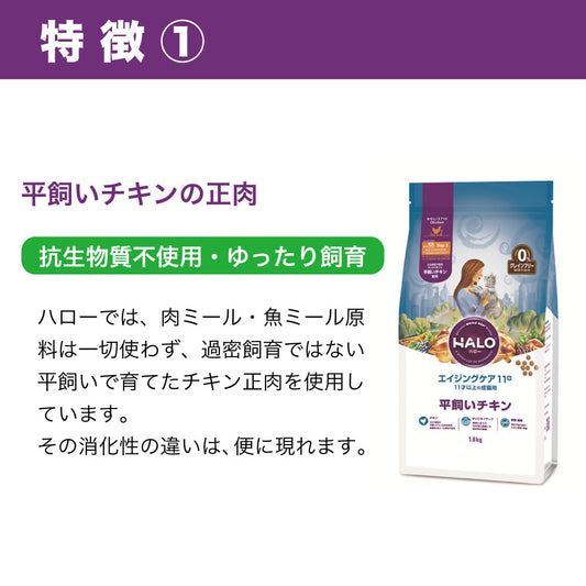 ハロー エイジングケア 11+ 11才以上の成猫用 平飼いチキン 1.6kg 猫 キャットフード 猫用 フード ドライ シニア グレインフリー アレルギー 穀物不使用