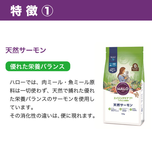 ハロー エイジングケア 7+ 7才以上の成猫用 天然サーモン 1.6kg 猫 キャットフード 猫用 フード ドライ シニア グレインフリー アレルギー 穀物不使用