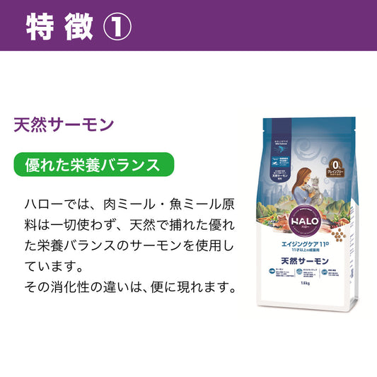 ハロー エイジングケア 11+ 11才以上の成猫用 天然サーモン 1.6kg 猫 キャットフード 猫用 フード ドライ シニア グレインフリー アレルギー 穀物不使用
