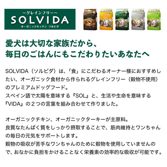 ソルビダ グレインフリー ターキー 室内飼育全年齢対応 1.8kg 犬 ドッグフード ドライ 穀物不使用 オーガニック アレルギー 無添加 総合栄養食 SOLVIDA