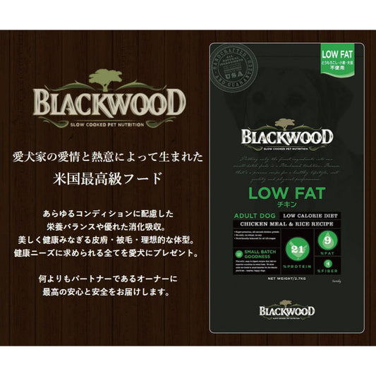 ブラックウッド ローファット チキン 2.7kg 中粒 犬 ドッグフード 犬用 フード ドライ 低カロリー 体重管理 イヌ 成犬用 高齢犬用 アレルギー BLACKWOOD
