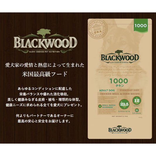 ブラックウッド 1000 チキン 980g 中粒 犬 ドッグフード 犬用 フード ドライフード イヌ 全犬種対応 成犬用 高齢犬用 エサ ドライ BLACKWOOD