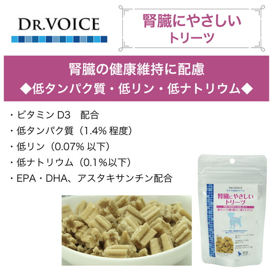 ドクターヴォイス 腎臓にやさしいトリーツ 50g 犬 おやつ 機能性 低アレルゲン 腎臓 EPA DHA 病後 低たんぱく 低リン 低ナトリウム 健康維持 国産 Dog's Voice