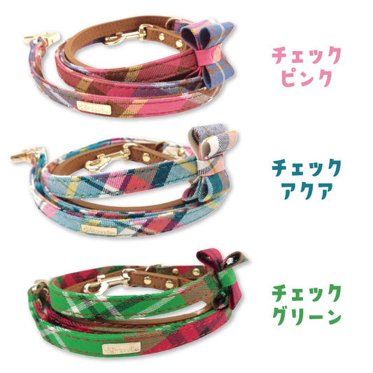 アゼリア パピロン リード 犬 散歩紐 犬用 ギンガム チェック リボン おしゃれ かわいい 散歩 お出かけ AZERIA