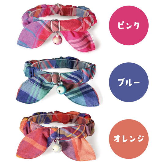 猫の暮らし サイズが変えられるシュシュカラー マドラス 猫 首輪 シュシュ 猫用 カラー かわいい おしゃれ チェック 柄 鈴付き ゴム入り 日本製