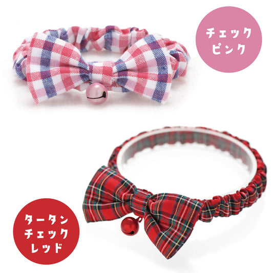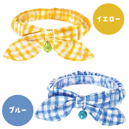 猫の暮らし リボンシュシュカラー 猫 首輪 シュシュ 猫用 カラー かわいい おしゃれ ギンガム チェック 蝶ネクタイ 柄 鈴付き ゴム入り 日本製