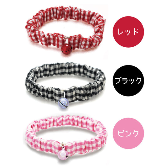 猫の暮らし サイズが変えられるシュシュカラー ギンガム 猫 首輪 シュシュ 猫用 カラー かわいい おしゃれ チェック 柄 ゴム入り 日本製