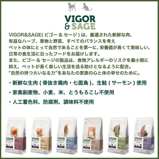 ビゴー&セージ ジンセン ウェルビーイング 成猫用 400g 猫 フード キャットフード 猫用フード ドライフード アダルト ハーブ グレインフリー VIGOR&SAGE