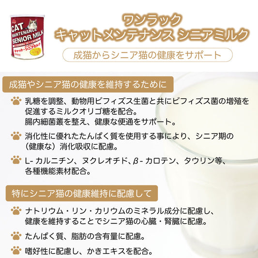 森乳サンワールド キャットメンテナンス シニアミルク 280g 猫 ミルク 粉ミルク 猫用 成猫 高齢猫 アダルト シニア猫 健康維持 国産