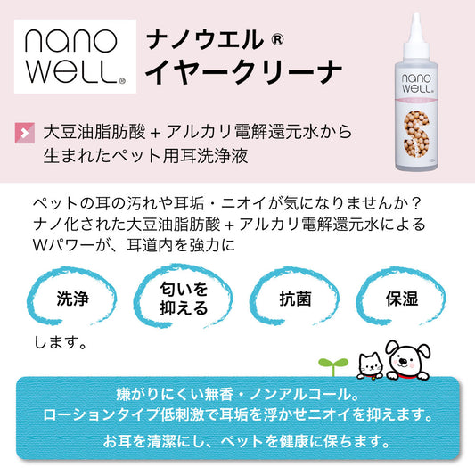 ナノウエル イヤクリーナ 150ml ペット 犬 猫 お手入れ 耳ケア イヤークリーナー 洗浄 消臭 保湿 ケア 耳垢 外耳 イヌ ネコ 日本製
