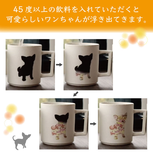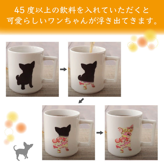 丸モ高木陶器 温感マグカップ チワワ ニューボン 犬 犬柄 マグカップ マグ 犬モチーフ 陶器 イヌ 食器 温度で変化 色が変わる 犬グッズ 日本製