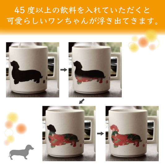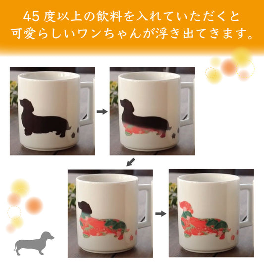 丸モ高木陶器 温感マグカップ ダックス ニューボン 犬 犬柄 マグカップ マグ 犬モチーフ 陶器 イヌ 食器 温度で変化 色が変わる 犬グッズ 日本製