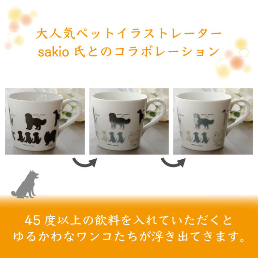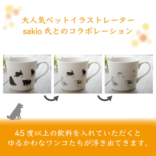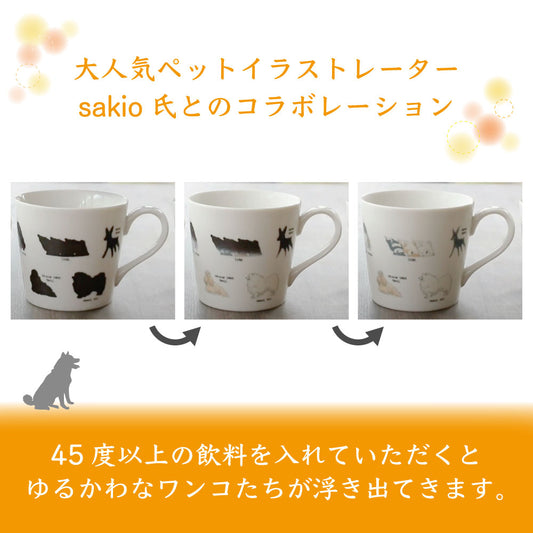 丸モ高木陶器 温感マグカップ ゆる犬マグカップ(2) スピッツ他 犬 犬柄 マグカップ マグ 犬モチーフ 陶器 イヌ 食器 温度で変化 色が変わる 犬グッズ 日本製
