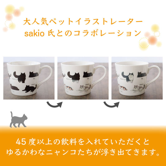 丸モ高木陶器 温感マグカップ ゆる猫マグカップ(2) 猫 猫柄 マグカップ マグ 猫モチーフ 陶器 ネコ 食器 温度で変化 色が変わる 猫グッズ 日本製