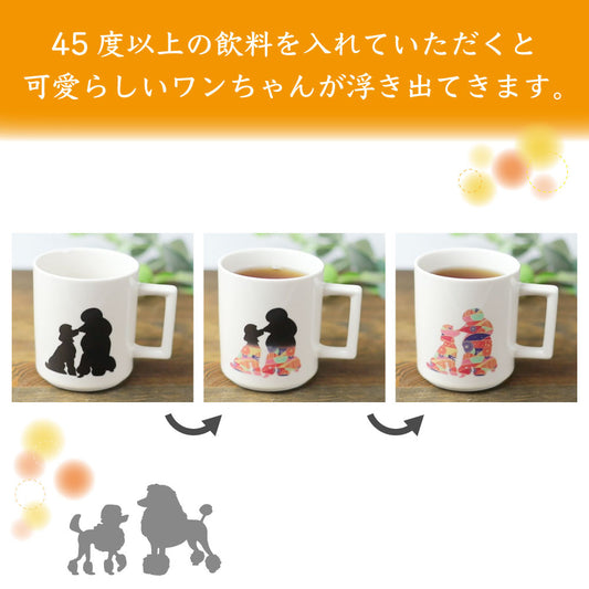 丸モ高木陶器 温感マグ 親子プードル ニューボン 犬 犬柄 マグカップ マグ 犬モチーフ 陶器 イヌ 食器 温度で変化 色が変わる 犬グッズ 日本製