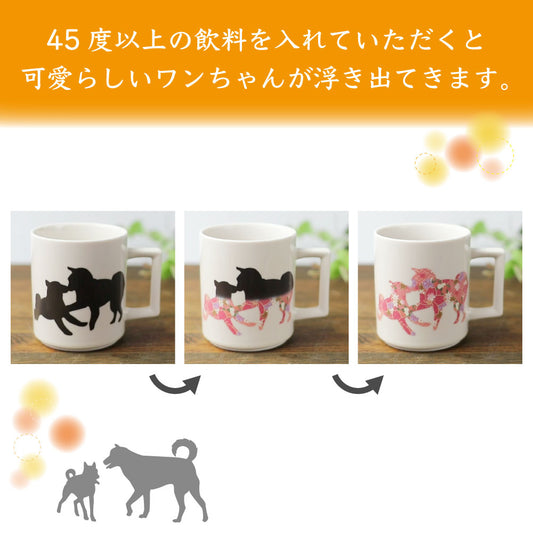 丸モ高木陶器 温感マグ 親子柴犬 ニューボン 犬 犬柄 マグカップ マグ 犬モチーフ 陶器 イヌ 食器 温度で変化 色が変わる 犬グッズ 日本製