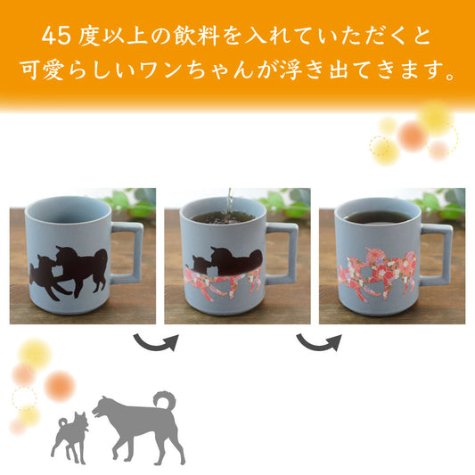 丸モ高木陶器 温感マグ 親子柴犬 マットライトグレー 犬 犬柄 マグカップ マグ 犬モチーフ 陶器 イヌ 食器 温度で変化 色が変わる 犬グッズ 日本製
