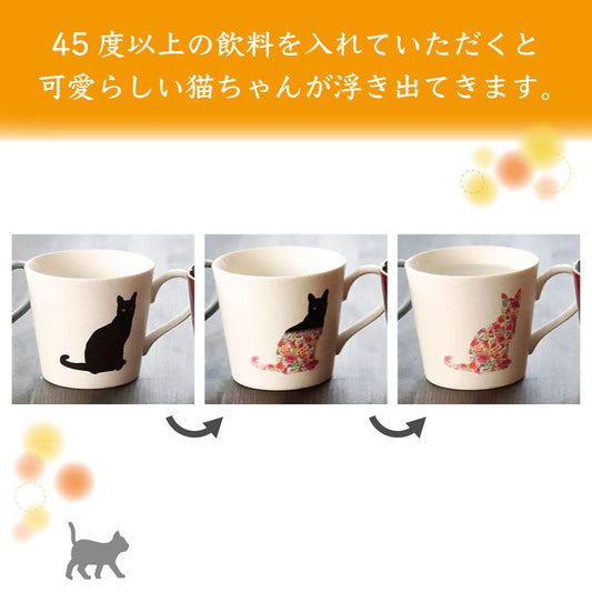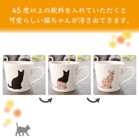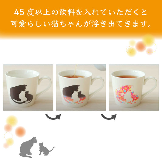 丸モ高木陶器 温感マグカップ 見つめ合う猫 ニューボン 猫 猫柄 マグカップ マグ 猫モチーフ 陶器 ネコ 食器 温度で変化 色が変わる 猫グッズ 日本製