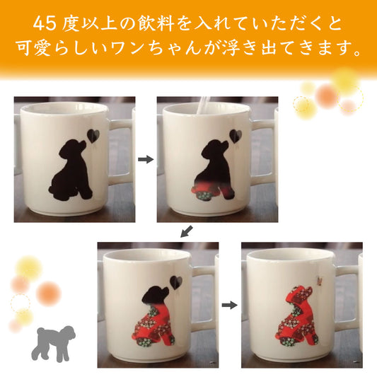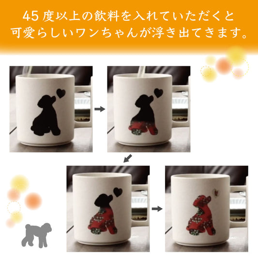 丸モ高木陶器 温感マグカップ プードル ニューボン 犬 犬柄 マグカップ マグ 犬モチーフ 陶器 イヌ 食器 温度で変化 色が変わる 犬グッズ 日本製