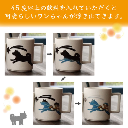 丸モ高木陶器 温感マグカップ 柴犬 ニューボン 犬 犬柄 マグカップ マグ 犬モチーフ 陶器 イヌ 食器 温度で変化 色が変わる 犬グッズ 日本製