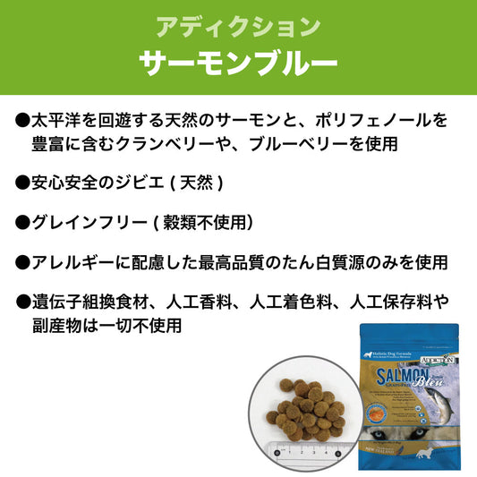 アディクション サーモンブルー 450g 犬 フード ドライ アレルギー配慮 グレインフリー 全年齢対応 犬用 フード 穀物不使用 Addiction