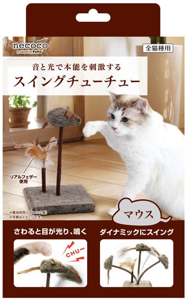 ペティオ necocoスイングチューチュー マウス 猫 じゃらし 猫用 おもちゃ 光る 鳴く トイ ストレス発散 運動不足