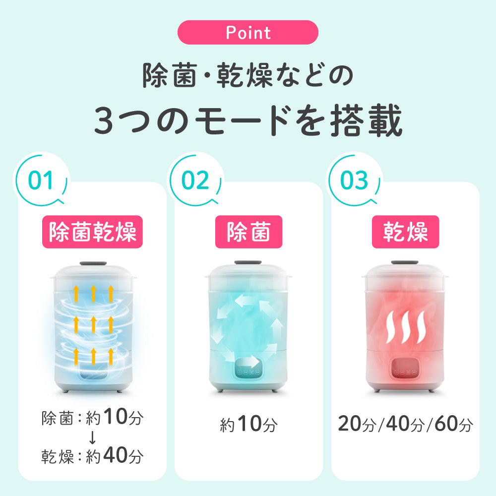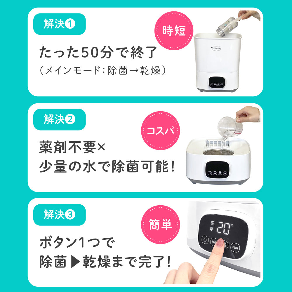 【IKUTANO 哺乳びん スチーム除菌 乾燥器の特長】