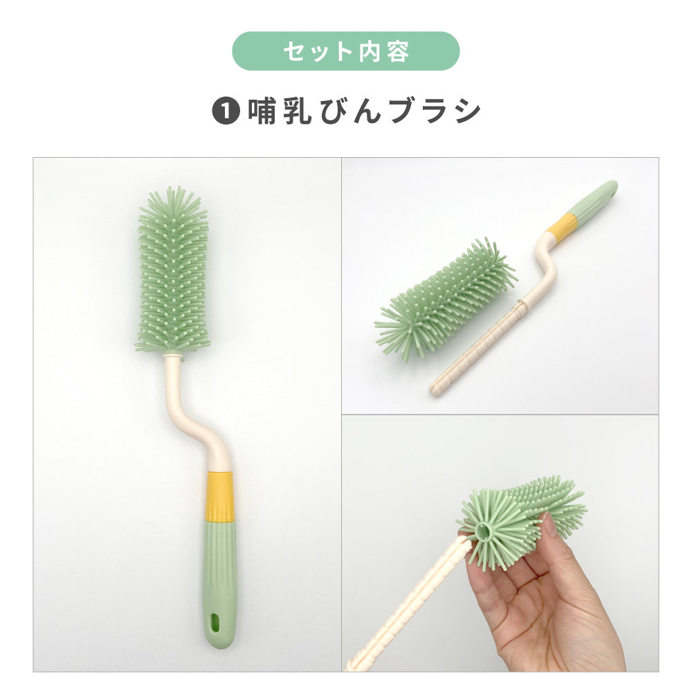 【セット内容】哺乳びんブラシ、乳首ブラシ、ストローブラシ、スタンド