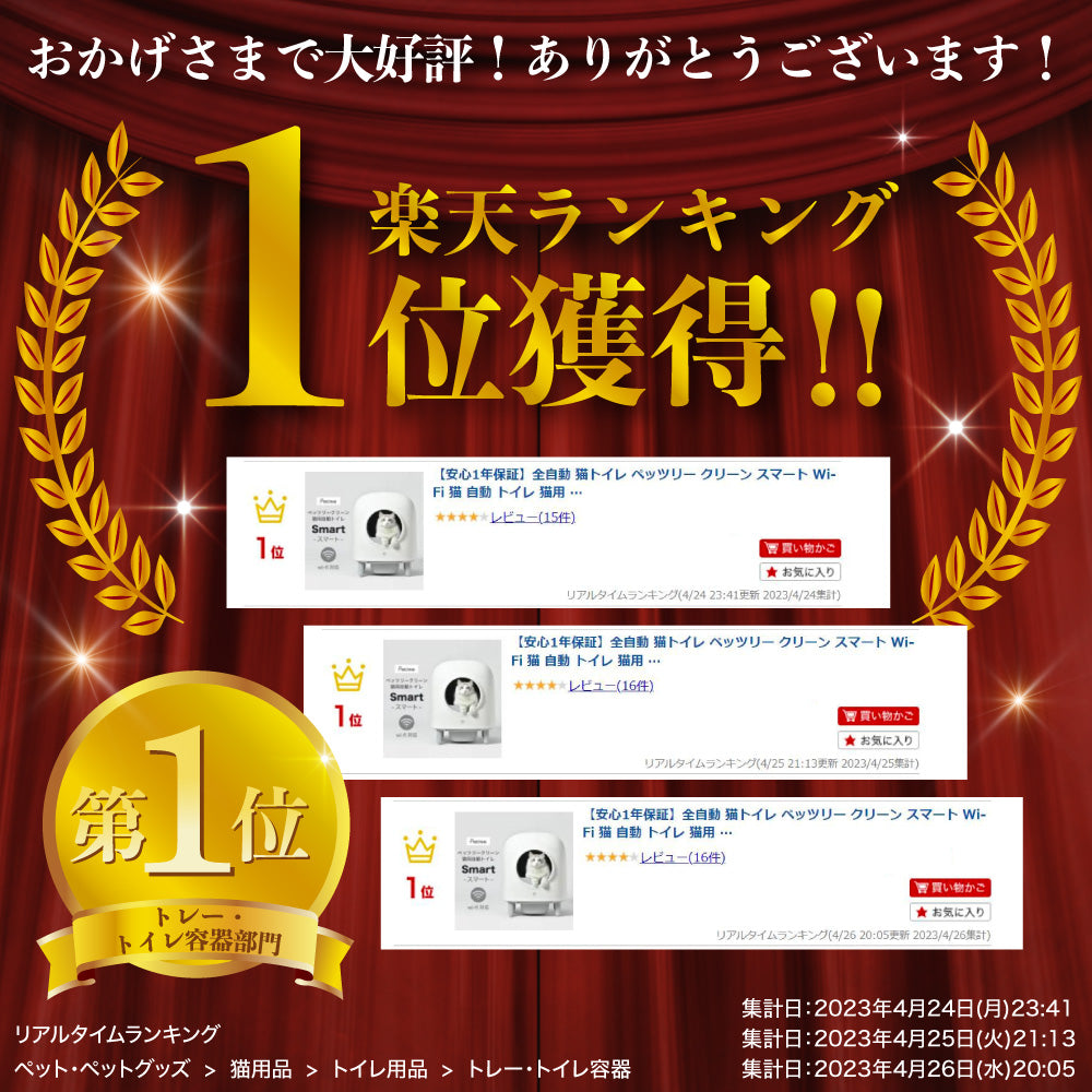 ペッツリークリーン猫用自動トイレ Wi-Fi対応タイプ Smart -スマート-は、猫ちゃんの安全と飼い主さんの便利さを考え、高性能センサーとIoT機能を搭載した"次世代のペッツリー"です。